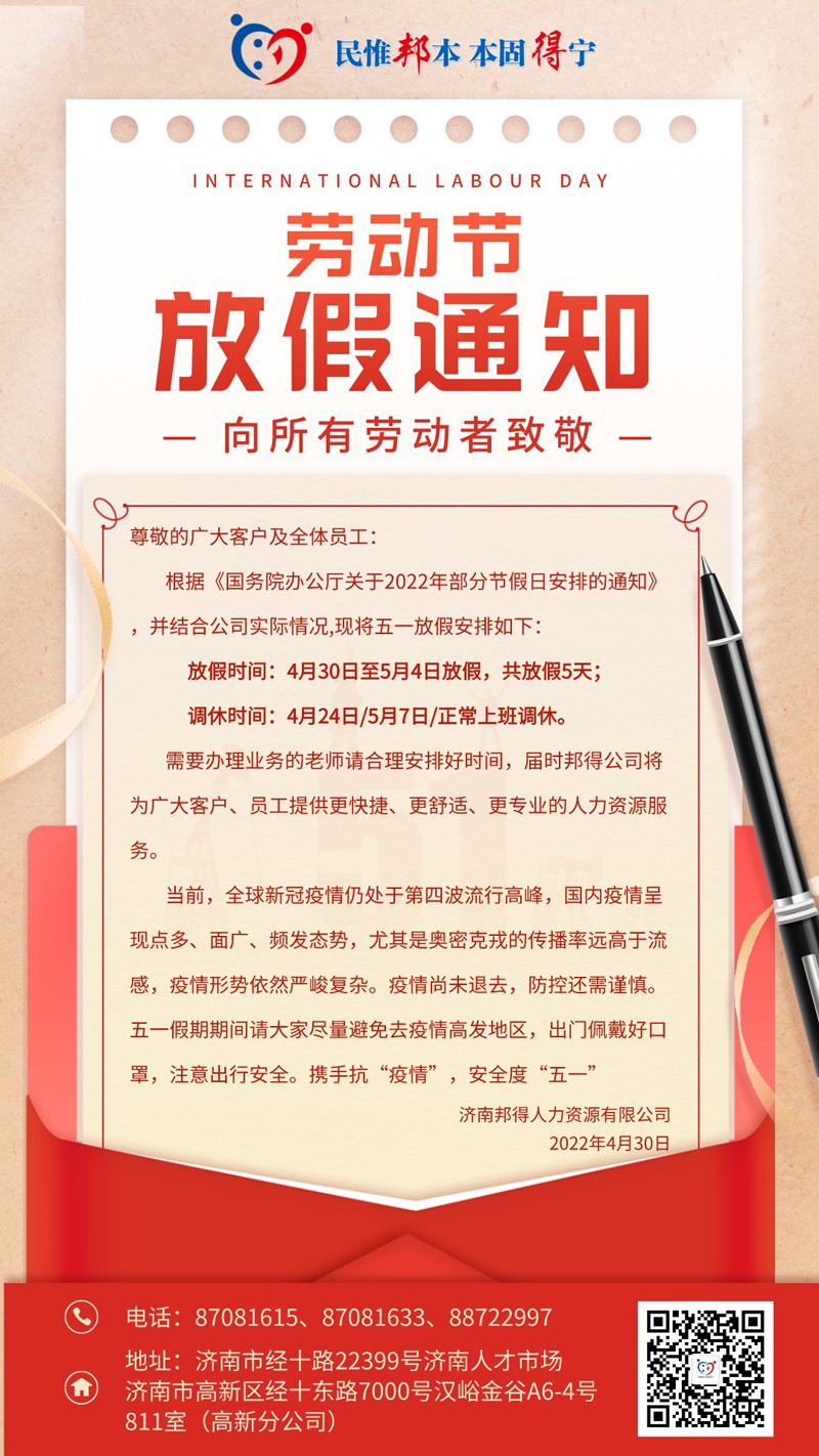 - 2024年5月濟南邦得人力資源有限公司總公司關于濟南市高...